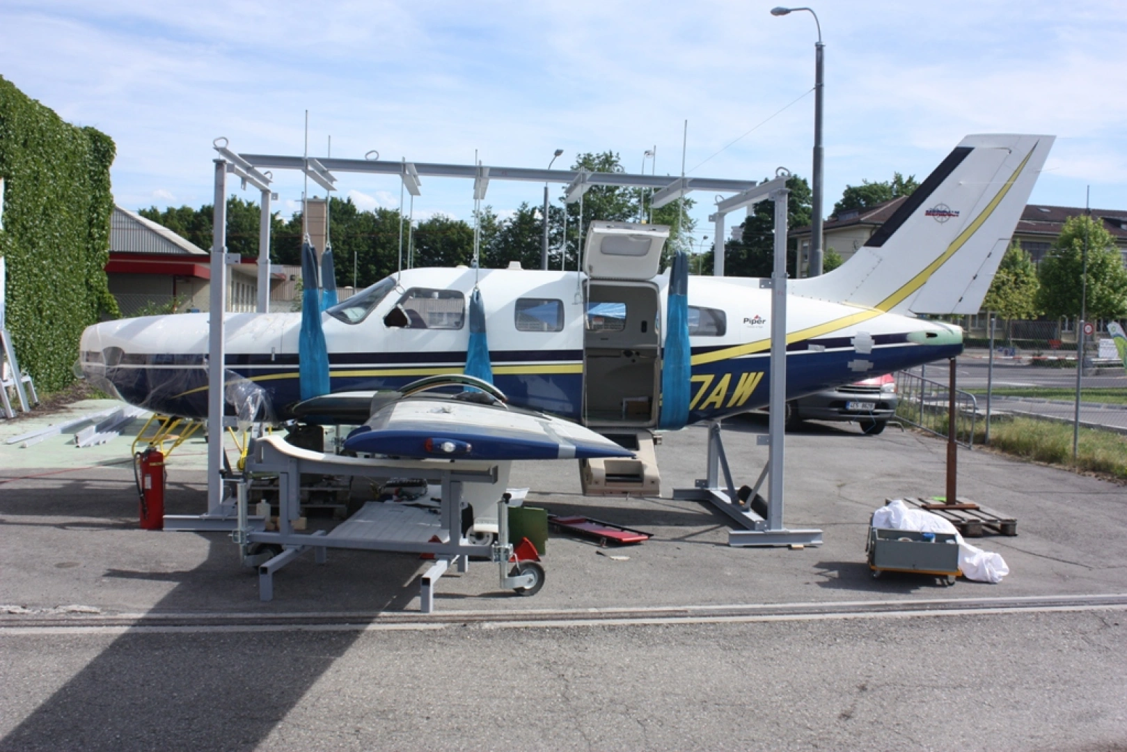 Last year Hradecka Letecka Servisni s.r.o. company successfully finished a repair and reassembly of PA-46-500TP Meridian, which was individually imported to the Czech Republic after his nose section had been damaged during NLG collapse after landing in Switzerland. To get transported the plane had to be disassebled by our technicians it into several parts first. Then, ancored into special fixtures, each part was transported on a truck to the Czech Republic, where a reassembly was performed. The reassembly, repair, all FAA and EASA procedures required for aircraft import, transfer to OK-REG and release took us 9 months only. Most of that time was spent by us wating for necessary spare parts delivery. The aircraft manufacturer has no similar case in his evidence, where Piper Meridian would be disassembled, and reassembled this way in Europe. If you are interrested by this extraordinary performance of our technicians, you can read more about it in Letectví + Kosmonautika Magazine, No. 10-2014, published on Friday, October 10, 2014.